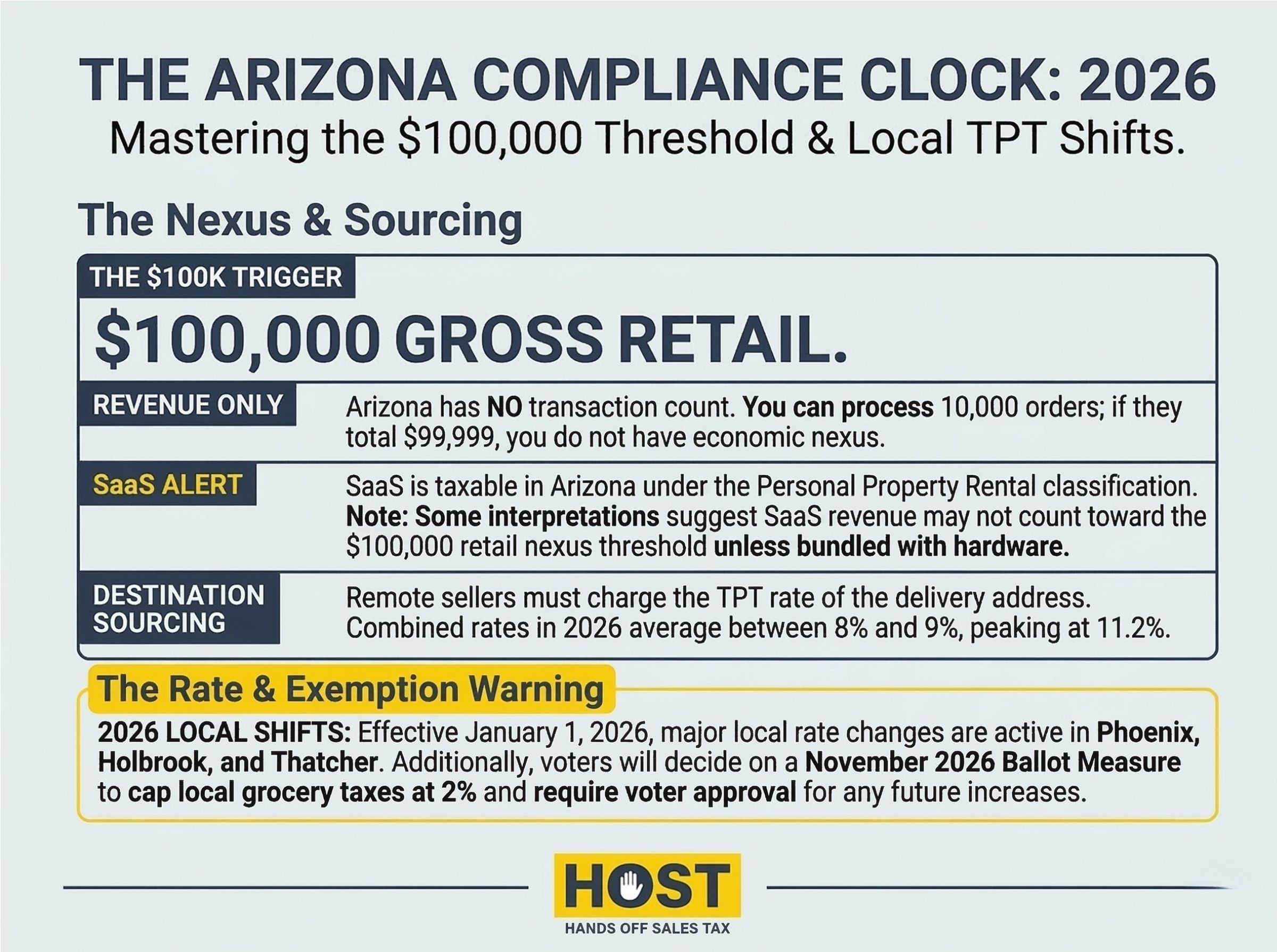 Contact HOST today to discuss your Arizona sales tax needs or schedule a free consultation. Let us handle the tax so you can focus on sales.