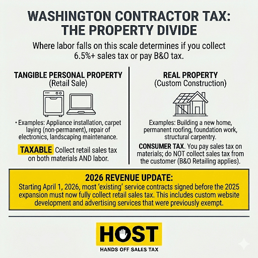 Washington’s treatment pivots on one distinction: Are you improving real property or installing tangible personal property?