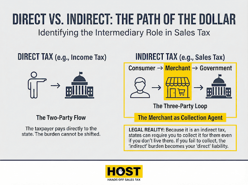 Is sales tax direct or indirect? For e-commerce businesses navigating multi-state compliance, this isn’t academic, it’s the key to understanding why nexus rules exist, why states can hold you liable for uncollected tax, and what obligations you actually carry.