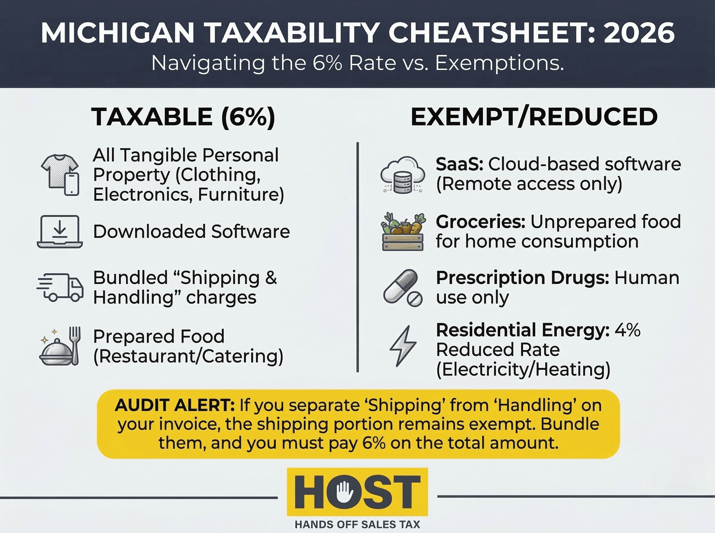 At Hands Off Sales Tax (HOST), we’ve managed Michigan nexus analysis and compliance since 1999. Whether you’ve just crossed thresholds or discovered past exposure requiring voluntary disclosure, we eliminate the complexity so you can focus on growth.